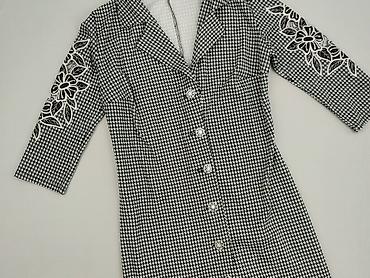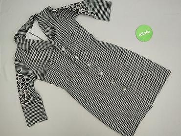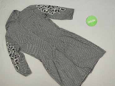 Sukienka damska EXCLUSIVE, rozmiar L - Krój: prosta, lekko trapezowa, długość do kolan - Rękawy: 3/4 - Wzór: czarno-biała, drobny geometryczny motyw na całej powierzchni - Detale: kontrastowe czar...