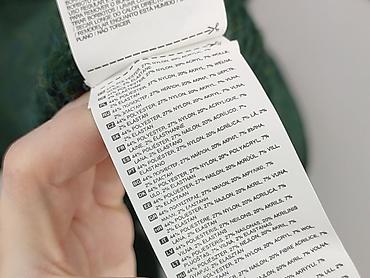 - Skład materiału (z metki): 44% poliester, 27% nylon, 20% akryl, 7% wełna, 2% elastan