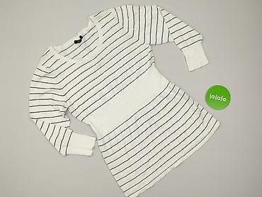 Sukienka swetrowa damska w paski - Rozmiar: S (metka) - Materiał: 100% akryl - Fason: dopasowany, dzianinowy - Rękaw: długi - Dekolt: okrągły - Wzór/kolory: poziome pasy w odcieniach szarości, ecr...