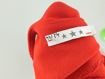 Sukienka damska w kolorze intensywnej czerwieni. - Krój: luźny, trapezowy, z dekoracyjnym marszczeniem i zakładkami u dołu z jednej strony (asymetryczne wykończenie). - Dekolt: głęboki, zaokrąglon...