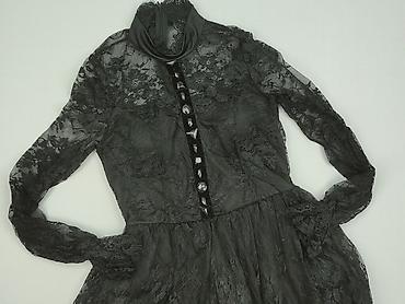 Czarna sukienka koronkowa SURE, rozmiar L. - Fason: dopasowany, mini. - Rękaw: długi. - Dekolt: okrągły z małym wycięciem i zapięciem z tyłu pod szyją. - Materiał: ozdobna koronka o wyrazistym, ok...