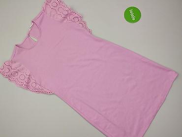 Różowa sukienka damska, rozmiar 40. - Fason: dopasowana u góry, lekko rozszerzana ku dołowi z falbaną/klinami przy dolnej krawędzi - Rękaw: krótki - Dekolt: okrągły - Długość: przed kolano lub do ...