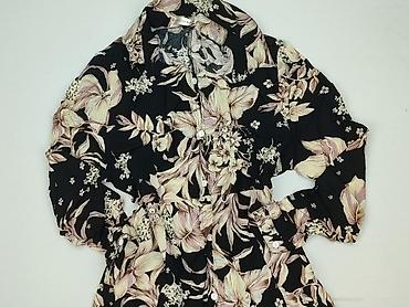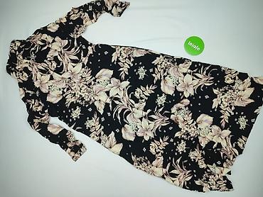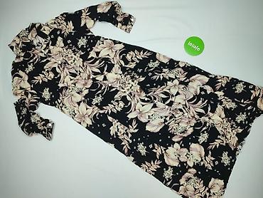 Sukienka koszulowa Days Like This, rozmiar L - Długość midi przed kolano, prosty krój z lekkim taliowaniem. - Cienka, lekko transparentna tkanina z czarną bazą i kwiatowym nadrukiem w odcieniach b...