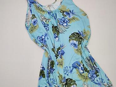 Sukienka damska bez rękawów BLACK&FISH, rozmiar L/XL. - Kolor: granatowy z kwiatowym wzorem w odcieniach błękitu i turkusu - Krój: prosty, lekko rozszerzany ku dołowi; delikatne marszczenie pod de...Długość: