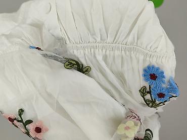Sukienka damska biała – haft angielski, rozmiar S - Krój: dopasowana góra, rozszerzana spódnica przed kolano - Dekolt: w kształcie litery V - Rękawy: krótkie, lekko bufiaste - Zapięcie: rząd dekor...