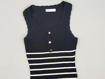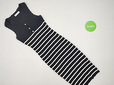 Sukienka dzianinowa w paski - Krój: dopasowany, długość midi - Ramiączka: cienkie, elastyczne - Wzór: czarno-białe, poziome paski - Zapięcie: rząd małych, białych guzików z przodu - Materiał: prąż...