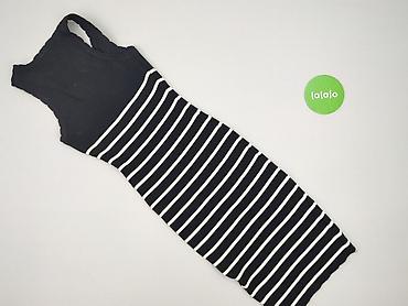 Sukienka damska na ramiączkach, prążkowana, w paski - Krój: dopasowany, długość midi - Dekolt: okrągły - Ramiączka: cienkie - Wzór: biało‑czarne, poziome paski - Wykończenie: czarne lamówki przy d...
