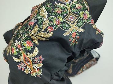 Sukienka/tunika damska z długim rękawem, rozmiar XL. - Kolor bazowy: czarny - Wstawki w kwiatowy wzór w odcieniach rdzawego różu, zieleni i bieli: na karczku, części rękawów oraz na dole sukienki ...