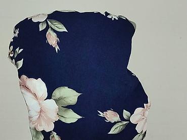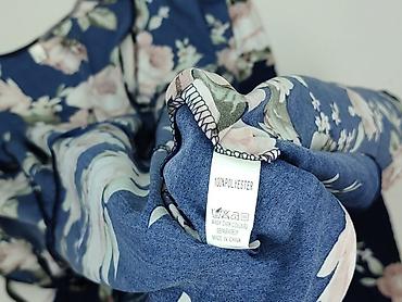 Sukienka damska w kwiaty, rozmiar L - Fason: lekko rozkloszowana, z falbaną u dołu - Dekolt: okrągły z niewielkim rozcięciem i wiązaniem - Rękaw: krótki - Wzór: gęsty, kwiatowy nadruk na granatowy...