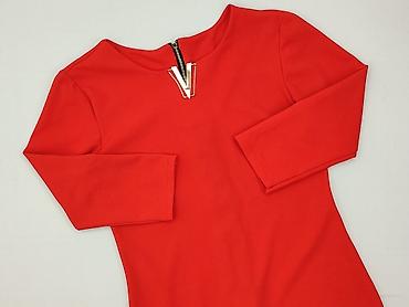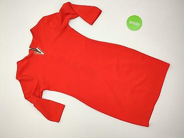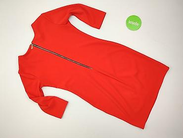 Czerwona sukienka damska, rozmiar S - Fason: ołówkowy, dopasowany, długość za kolano/około midi - Rękaw: 3/4 - Dekolt: łódka - Zapięcie: zamek na plecach - Materiał: elastyczna dzianina o reliefow...