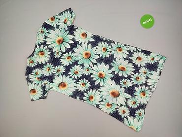 Sukienka damska z krótkim rękawem w duży kwiatowy print (stokrotki) na granatowym tle.