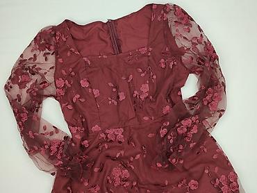 Sukienka damska FLOYD, rozmiar L - Krój: dopasowany, mini - Kolor: głęboki burgund/bordowy - Materiał: koronkowa tkanina z dekoracyjnym, wypukłym wzorem; delikatna podszewka pod spódnicą - Rękaw: ...