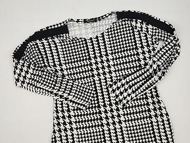 Sukienka damska z długim rękawem - Krój: dopasowany, mini, z okrągłym dekoltem - Wzór: klasyczna pepitka (czarno-biała) na panelu przednim; tył i rękawy gładkie, czarne - Materiał: elastyczna dzian...