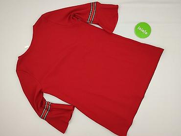 Czerwona sukienka damska z krótkim rękawem - Rozmiar: L (na metce) - Materiał: 95% poliester, 5% spandex – gładka, elastyczna dzianina zapewniająca komfort i dopasowanie - Krój: lekko rozkloszowan...