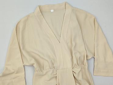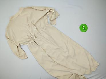 Sukienka damska Reserved - Rozmiar: M - Fason: midi, prosty krój z paskiem do wiązania w talii - Dekolt: w kształcie litery V - Rękaw: krótki, luźniejszy - Kolor: beżowy / piaskowy - Materiał: mię...