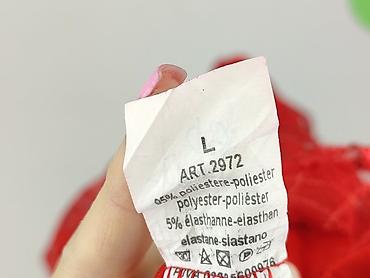 - Tkanina: 95% poliester, 5% elastan (metka „ART. 2972”)