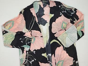 - Dekolt/wykończenie: otwarty przód bez zapięcia (narzutka/szlafrokowy krój), lekko opływający