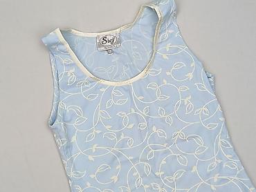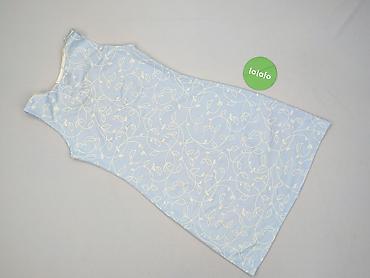 Sukienka damska bez rękawów - Kolor: jasny błękit z granatowym, roślinnym wzorem all-over - Fason: prosta, lekko zwężana; dół zakończony falbaną - Dekolt/tył: okrągły otwór na plecach zapinany na ...Długość: