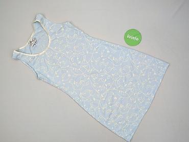 Sukienka damska bez rękawów, w odcieniu przygaszonego błękitu. - Fason: luźna, długość do kolan (w zależności od wzrostu), rozszerzana ku dołowi - Góra: ażurowa, szydełkowa/koronkowa narzutka z fa...