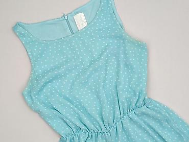 Sukienka damska na ramiączkach – turkusowa - Krój: rozkloszowana spódnica, dopasowana góra - Góra marszczona/plisowana, pod biustem szeroki pas podkreślający talię - Dekoracja: ozdobna kokarda z b...