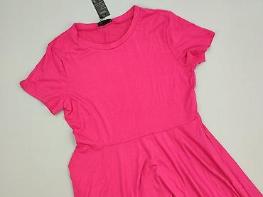 Sukienka damska Sinsay, rozmiar S - Kolor: pudrowy róż - Krój: T-shirtowa góra z okrągłym dekoltem, krótkie rękawy; dół z doszytą falbaną tworzącą lekko rozkloszowaną spódnicę - Długość: przed kol...