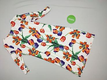 Sukienka damska w kwiaty, rozmiar S. - Fason: dopasowana góra, rozkloszowany dół, krótkie rękawy - Wzór: duże kwiaty w odcieniach łososiowego, zieleni i niebieskich akcentów - Dekolt: okrągły - Za...