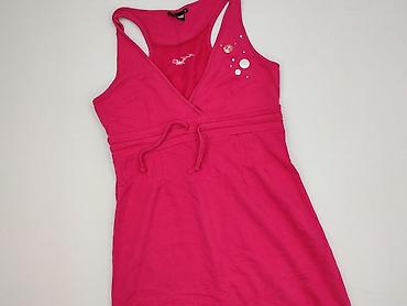 Sukienka damska bez rękawów, różowa (melanż), rozm. M - Krój: rozkloszowana spódnica, góra z dekoracyjnym skręceniem/uzłem na środku, odcinana pod biustem, okrągły dekolt. - Długość: przed kolano ...