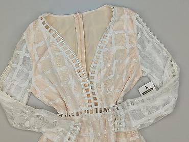 Sukienka damska New Look - Model: koronkowa mini - Kolor: beżowy/nude z kremową koronką w falujące pasy - Krój: dopasowany, długość przed kolano - Rękaw: długi - Dekolt: łódka - Materiał: - wier...