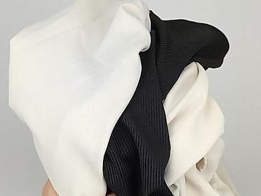 Sukienka damska midi, wzór etniczny/ikat, czarno-biała - Krój: midi, z zaznaczoną talią, rozszerzany dół - Rękawy: długie, lekko bufiaste z gumką przy mankiecie - Dekolt: na zakładkę z wiązaniem/s...