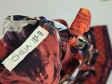 - Wzór: artystyczny, kwiatowo-abstrakcyjny; dominują odcienie czerwieni, bordo, pomarańczu z akcentami niebieskiego i czerni