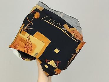 - Wzór: grafiki w odcieniach ochry, pomarańczu i żółtego na czarnym tle (geometryczne motywy, liście, kreski) – wyraźny klimat vintage/retro