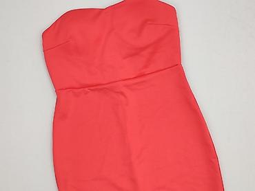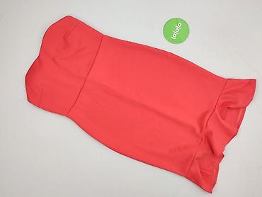 Sukienka damska bez ramiączek, kolor intensywny koralowy. Fason ołówkowy podkreślający sylwetkę, długość za kolano. Góra z usztywnioną linią dekoltu typu serce, wewnątrz elastyczna taśma antypoślizgowa dla lepszego trzymania. Dół zakończony efektowną falbaną/mermaid hem. Gładka, elastyczna tkanina o satynowym połysku i średniej grubości – dobrze dopasowuje się do ciała. Rozmiar z metki: L. Idealna na eleganckie wyjścia, przyjęcia i wieczorne okazje.