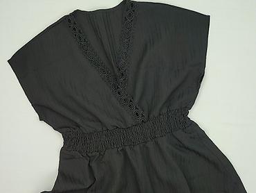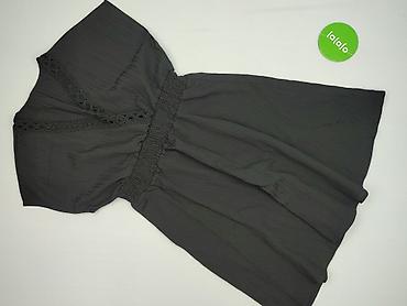 Czarna sukienka damska, rozmiar L - Fason: prosta, lekko odcinana w talii z marszczeniem, długość mini/za kolano (w zależności od wzrostu) - Dekolt: V z subtelną falbanką przy wykończeniu - Rękawy...