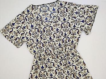 Sukienka damska z motywem kwiatowym - Krój: midi, lekko rozkloszowany dół - Dekolt: w kształcie litery V - Rękaw: krótki, półprzezroczysty - Materiał: 100% poliester (lekka, zwiewna tkanina; metka...
