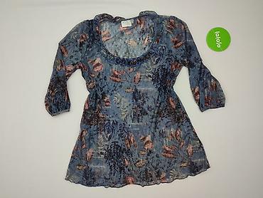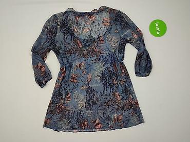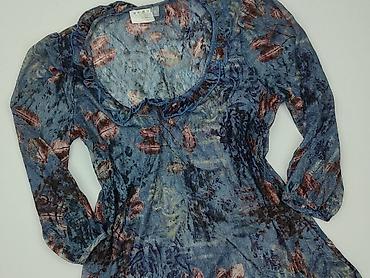 Sukienka damska, rozmiar L - Fason: prosta, ołówkowa, długość do kolan - Rękaw: 3/4 - Dekolt: okrągły - Wzór: bogaty, kwiatowo‑paisley w odcieniach granatu i niebieskiego (denim look) - Materiał: ...
