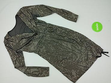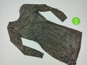 Sukienka damska z połyskiem, rozmiar M - Fason: dopasowany, długość midi, kopertowe marszczenia na biodrach podkreślające sylwetkę - Dekolt: szeroki, hiszpański/łódkowy – można nosić opuszczony na...Stan: