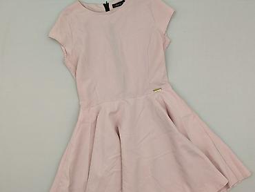 Sukienka koronkowa s.Moriss – rozmiar XS - Kolor: pudrowy róż - Fason: rozkloszowany, z kontrafałdami w spódnicy - Dekolt: łódka, krótkie rękawki z koronki - Materiał: koronkowa tkanina z kwiatowy...Stan: