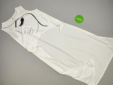 Sukienka damska bez rękawów, biała, z graficznym nadrukiem twarzy