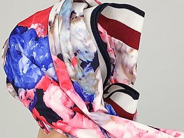 - Wzór: intensywny, kwiatowy print w odcieniach różu, granatu, błękitu, ecru i czerni
