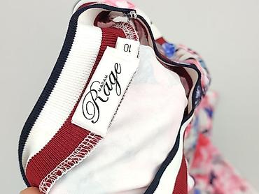 Sukienka Madam Rage, rozmiar 10 - Krój: mini, dopasowana, bez rękawów - Dekolt: z falbaną/żabotem z przodu - Dół: zakończony szeroką, kremową falbaną - Wzór: kwiatowy w odcieniach pudrowego różu, ...Stan: