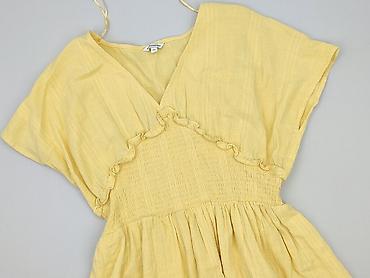 Żółta sukienka damska w kropki, kopertowy fason - Typ: sukienka mini z falbanami - Krój: kopertowy dekolt V z falbanką, lekko odcięta w talii - Rękawy: krótkie, bufiaste z elastycznym marszczeniem...