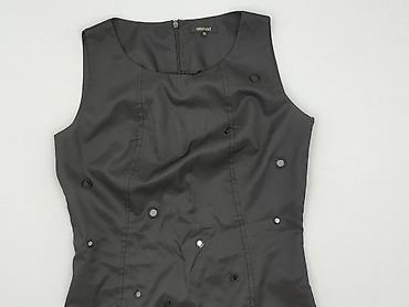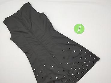 Sukienka damska COLOR BLOCK, rozmiar S - Klasyczna mała czarna bez rękawów, ołówkowa, długość przed kolano - Dekolt okrągły - Ozdobne wstawki wzdłuż ramion i przy dolnym brzegu: pasek imitujący sk...Stan: