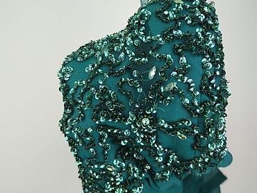 - Góra z transparentnej siateczki z bogatym, ręcznym zdobieniem: cekiny i koraliki w odcieniach zieleni tworzą efektowny, roślinny wzór