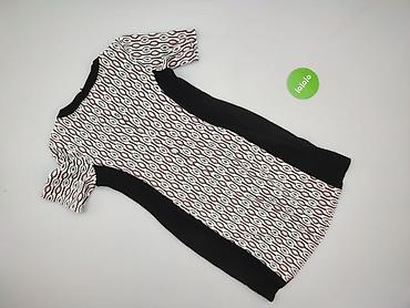 Sukienka damska, rozmiar M - Fason: dopasowany, długość przed kolano - Rękaw: krótki - Dekolt: okrągły - Zapięcie: długi zamek błyskawiczny z przodu - Wzór: patchwork/geometryczny, kontrast czerni...