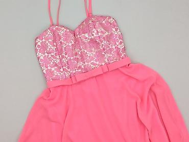 Sukienka damska w kolorze intensywnego różu - Rozmiar: M (z metki) - Krój: dopasowana góra, od talii rozkloszowany dół z kontrafałdami - Rękaw: do łokcia - Dekolt: okrągły - Zapięcie: zamek z tyłu ...