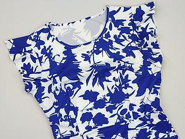 Sukienka damska Exell, rozmiar 38 - Fason: dopasowana, ołówkowa, krótkie rękawki - Dekolt: łódkowy z niewielkim wycięciem na środku - Zapięcie: zamek z tyłu - Kolor i wzór: biała baza z efektownym...