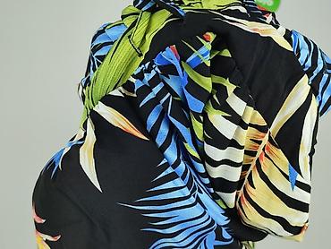 Sukienka damska w tropikalny wzór - Krój: zwiewna, z falbanami; dekolt typu hiszpanka z elastyczną gumką, krótki rękaw z lekką bufką; w talii wiązanie na pasek z tego samego materiału. - Wzór/kolo...Stan: