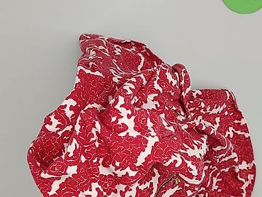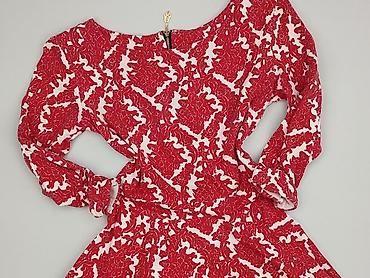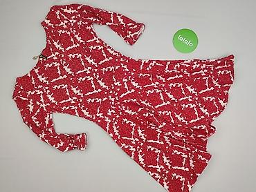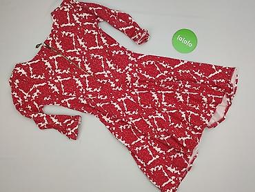 Sukienka damska z paskiem – wzór kwiatowy na czerwonym tle - Fason: lekko rozkloszowana, długość za kolano, krótki rękaw - Dekolt: okrągły, delikatnie marszczony przy szyi - W zestawie: cienki pas...