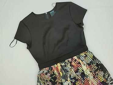 Sukienka damska Dotti, rozmiar 10 - Fason: dopasowana, z krótkim rękawem, długość przed kolano - Wzór: mix etnicznych pasów u góry i drobnych kwiatów na dole; dominują kolory granatowy, różowy i p...
