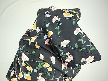 - Wzór: kwiatowy print w odcieniach żółci i różu na czarnym tle